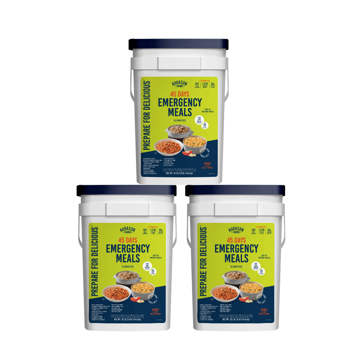 Ninety days of delicious easy-to-prepare emergency food for 1 person, or a family of 3 for one month, all packed in easily transportable, stackable, and watertight 7-gallon pails. Includes 3 meals a day plus snacks and drinks. The shelf life (up to 20 years!) makes this bundle perfect for emergency preparedness. As an added bonus, the shelf life is on each package and not the sealed bucket, so if you need to open the bucket for any reason (or you just want to try a pouch!) you can rest easy knowing your meals will still be good for their full normal shelf life. It even includes a meal plan!