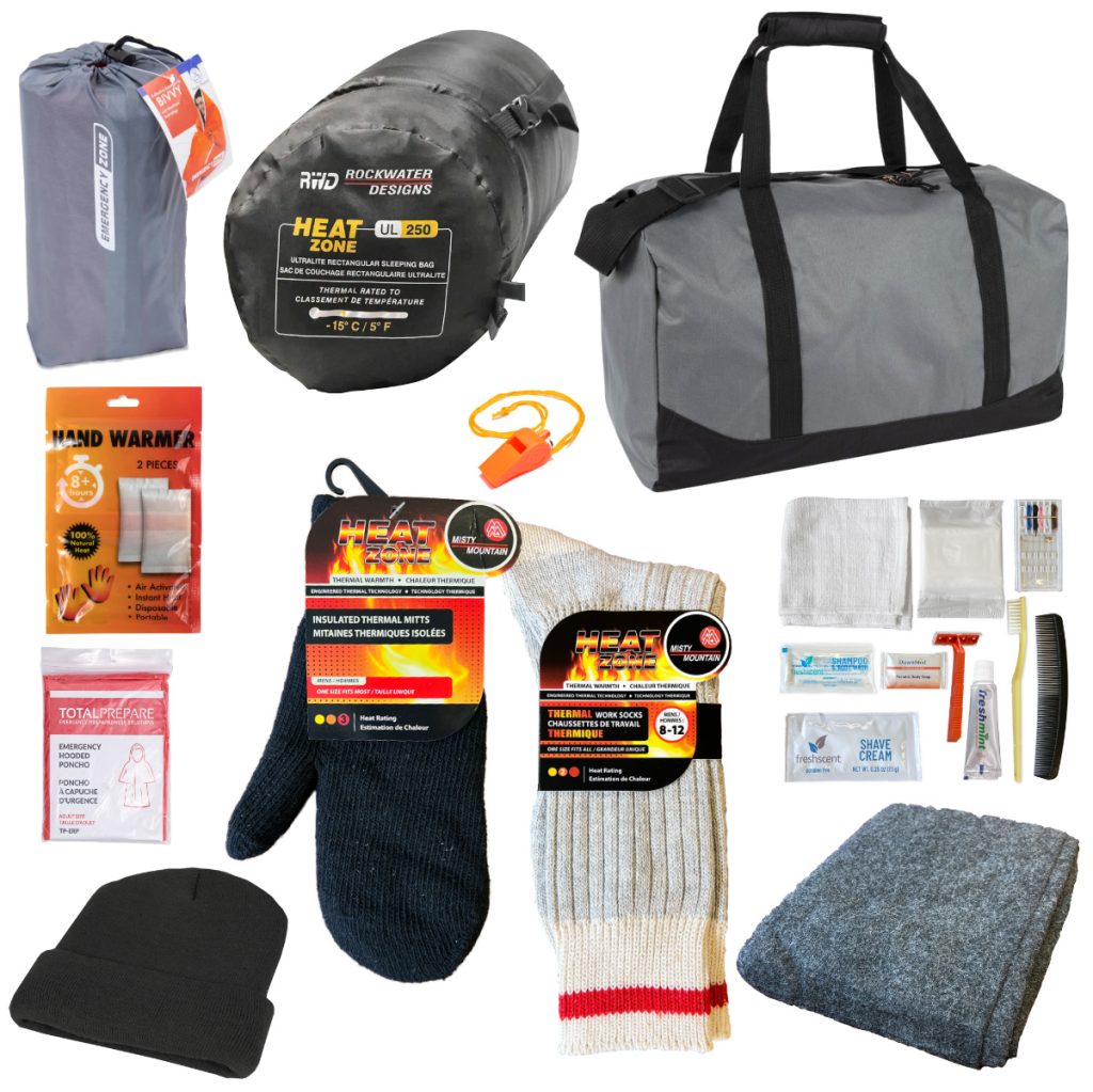Every kit in the series features cold-weather insulation, extremity protection, and personal comfort items that help safeguard against hypothermia and frostbite. Warm accessories, outer-layer protection, and high-visibility or basic safety tools help support both day-to-day use and emergency situations. All items are packed inside a durable, reusable carry bag that makes distribution simple and allows recipients to transport their belongings with dignity.